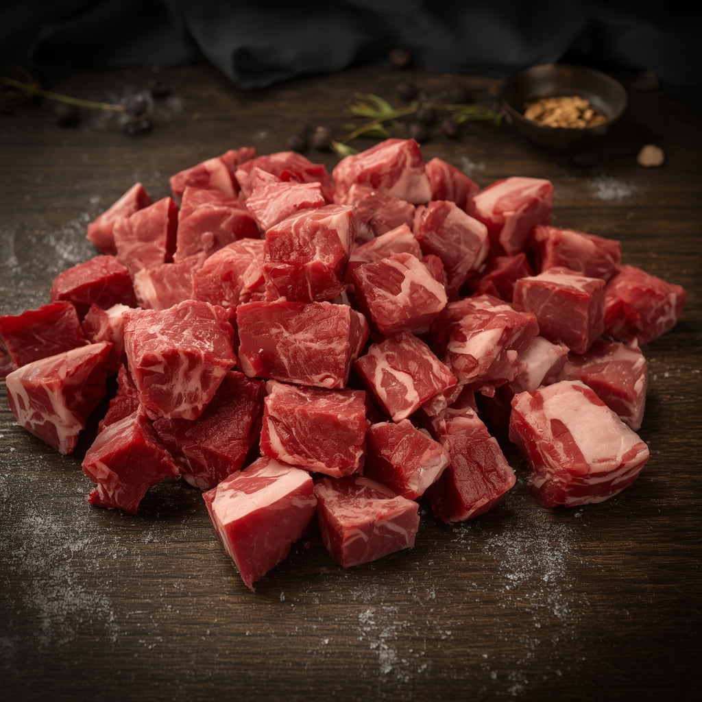 Pörköltbe válogatott, kollagéndús kockák, csontos darabbal az intenzívebb ízért és szaftért. Lassú főzéshez ideális: gulyásba, pörköltbe, bográcshoz.